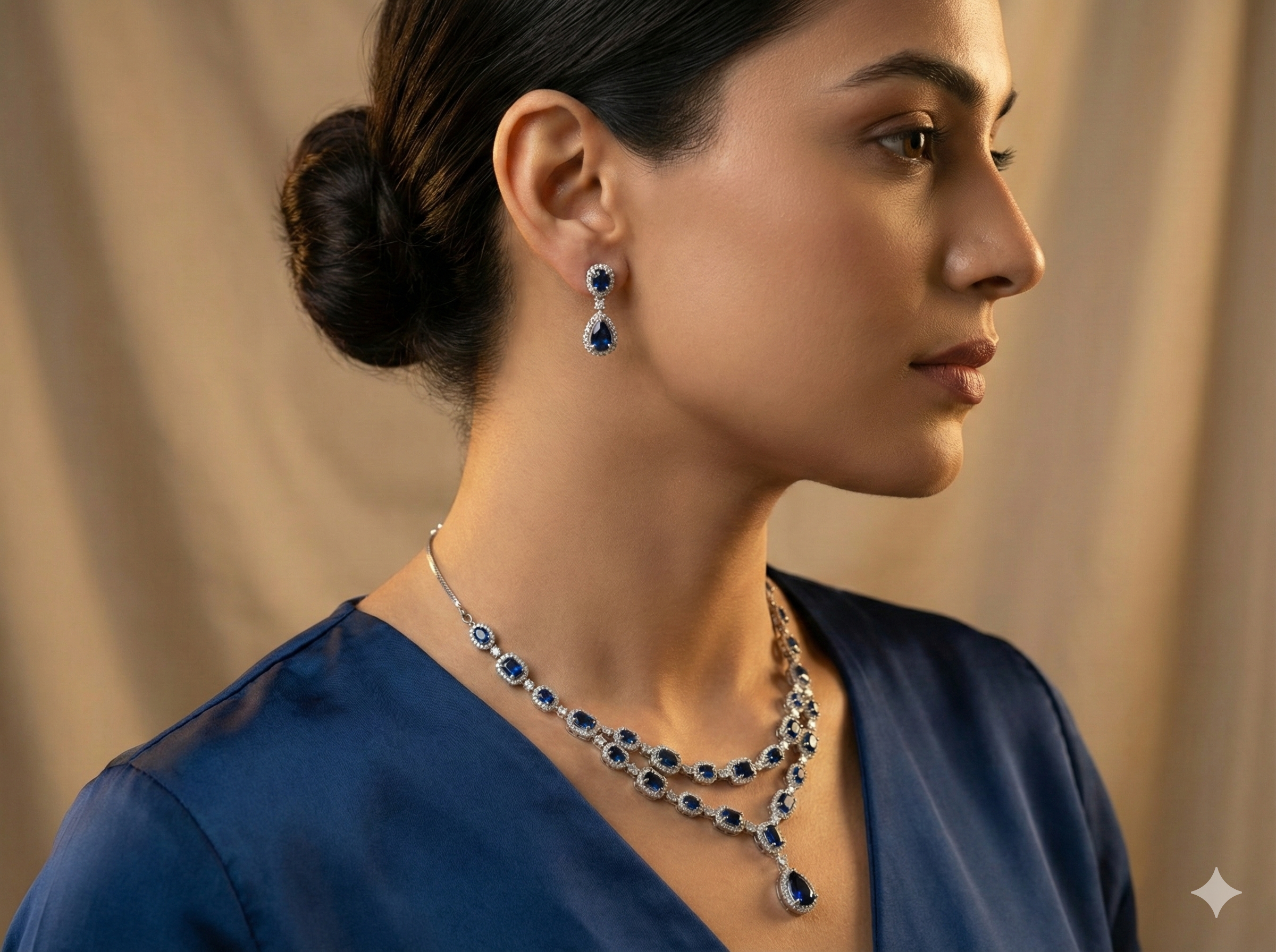 Premium Royal Blue Sapphire CZ Statement Necklace Set